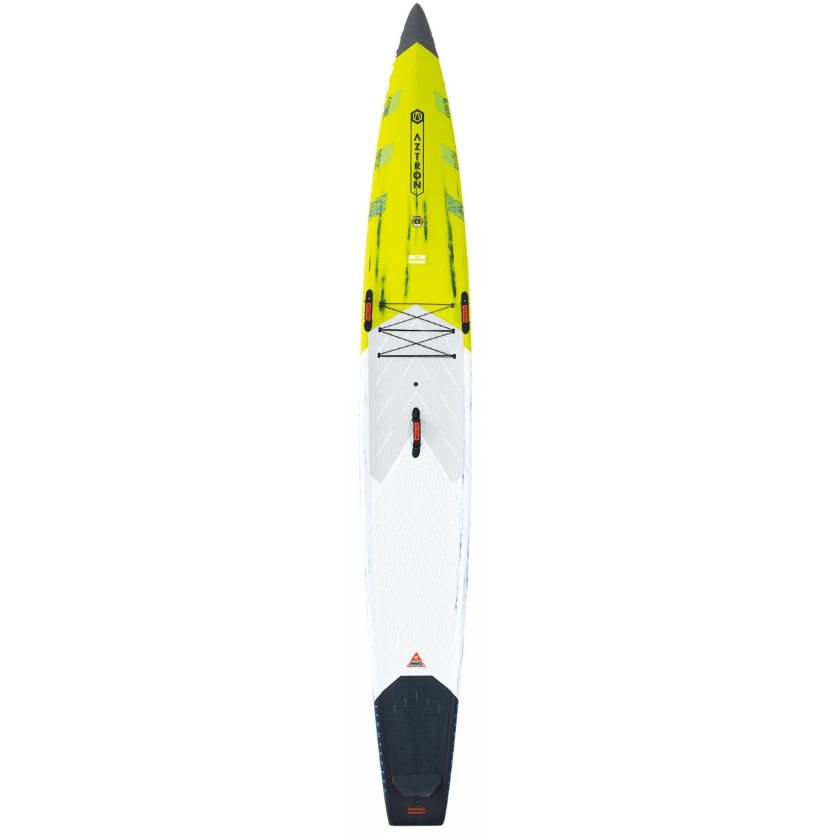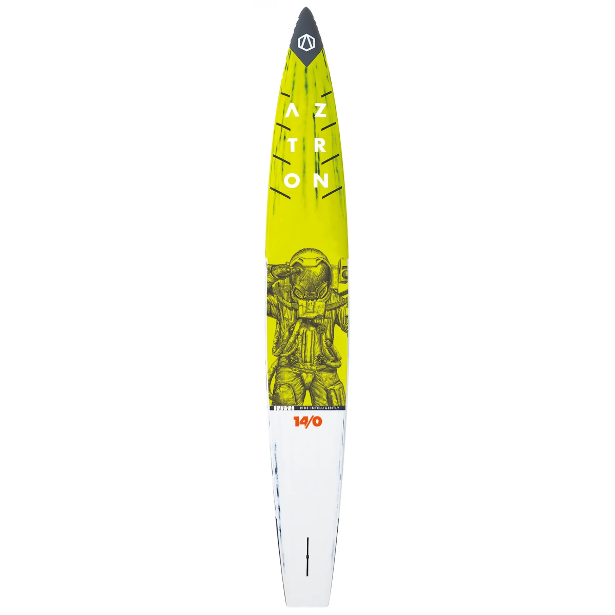 Næsten ulovligt smuk og velproduceret Carbon Race SUP produceret i branchens absolut bedste materialer. Kompromisløst Race SUP, designet til den der vil være hurtigst. Her får du altså en race SUP der virkelig vil fremad og som glider fantastisk gennem vandet. Aztrons unikke teknologi produceret i fuld Carbon epoxy omkring en CNC shapet EPS kerne, giver et let og fantastisk stift board, med en utrolig flot finish, designet til fart og speed.
