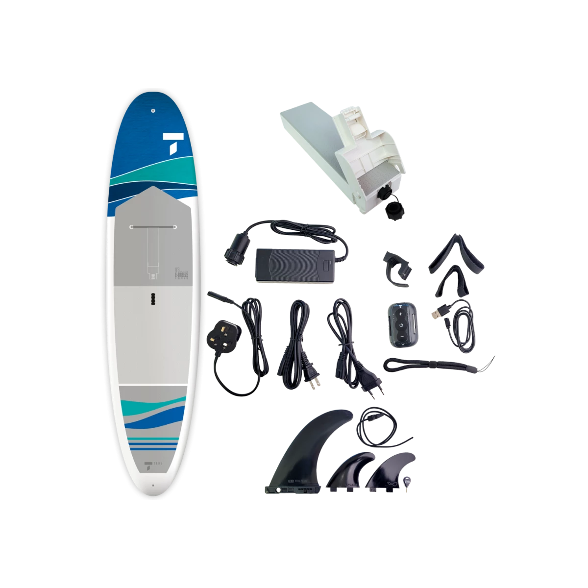 En motor fuldt integreret i Tahe’s bestseller SUP, nemlig performeren. Med fjernbetjeningen fastgjort til håndleddet eller pagajen kan du justere din hastighed (3 niveauer).